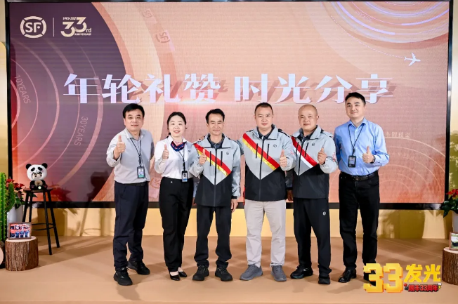 在“时光有礼”环节,7位临退员工参加了专门为他们举办的荣休和返聘仪式。退休嘉宾张云娇:“时光转瞬,我来到顺丰已经9年余载,在这个团结奋进充满爱的团队里大家一起并肩度过了一年又一年。
